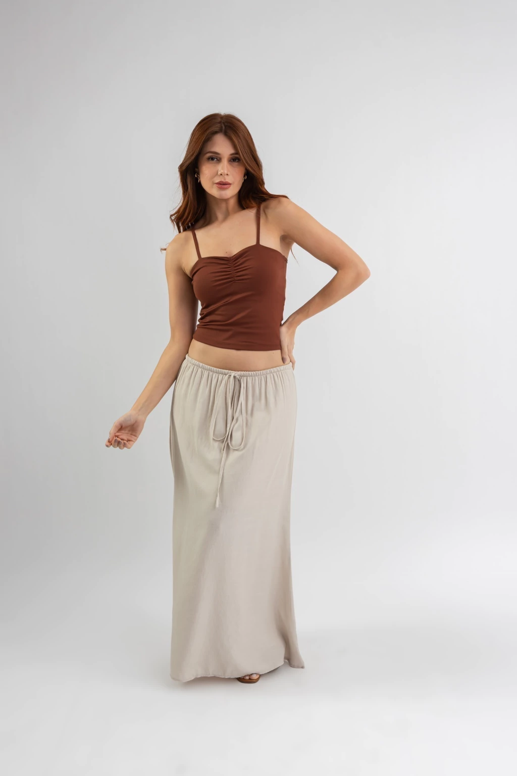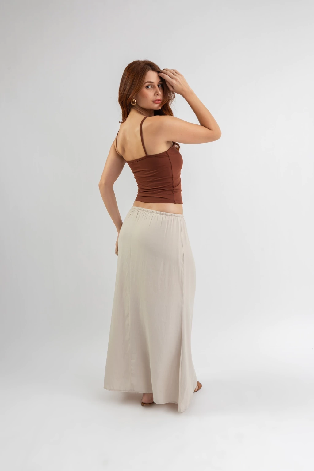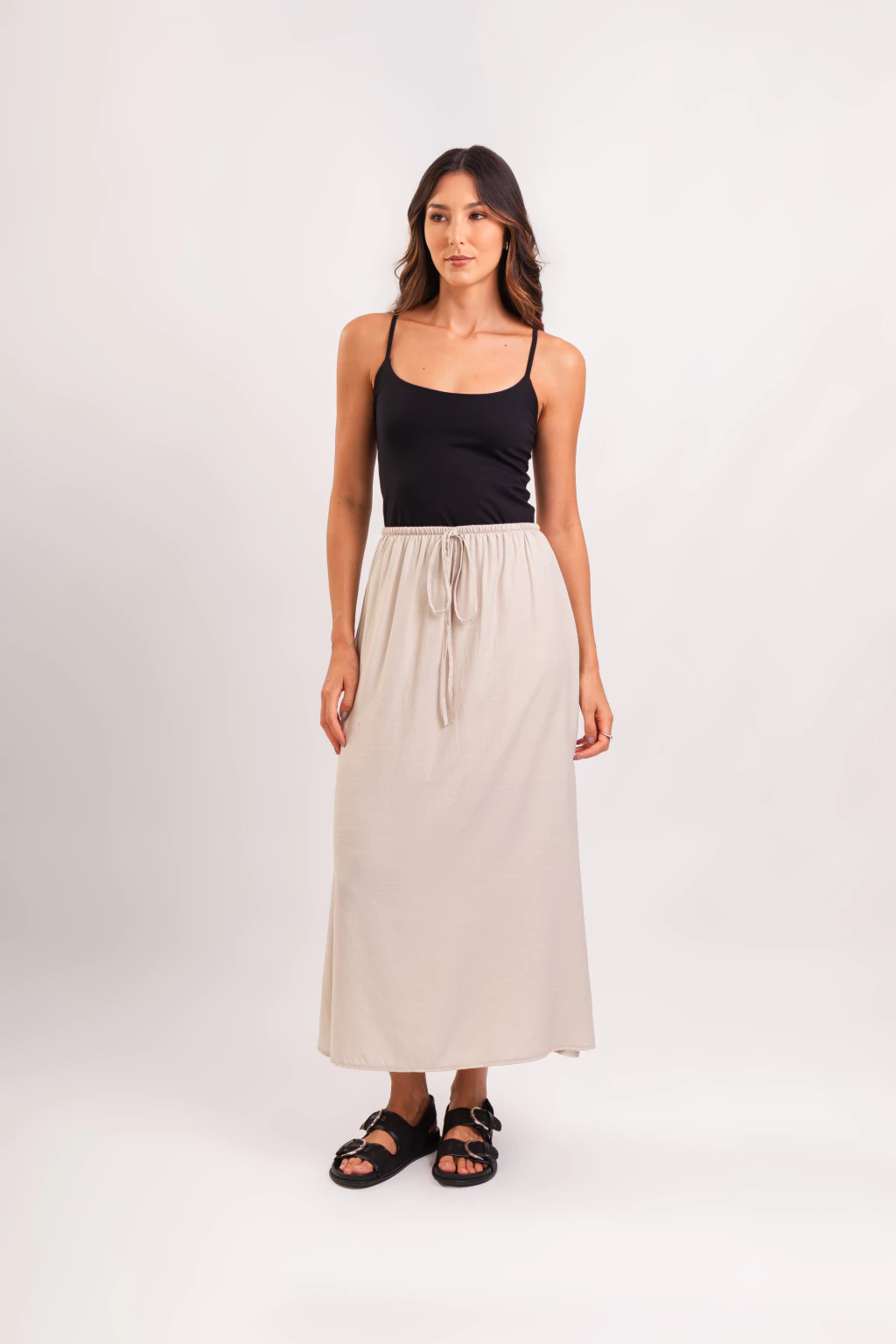 Descubra o conforto e a elegância da nossa Saia Longa Regulável . Confeccionada em um tecido misto de 55% viscose e 45% poliéster, esta peça é perfeita para quem busca um caimento solto e despojado.